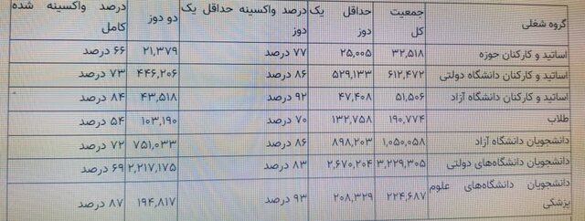 این در حالی است که گزارش واکسیناسیون کووید- ۱۹ نظام آموزشی کشور تا تاریخ ۹ آذرماه ۱۴۰۰ نشان می دهد بیش از ۳ میلیون و ۱۶۳ هزار و ۲۵ دانشجو در دانشگاههای دولتی، علوم پزشکی و آزاد اسلامی دو دوز واکسن کرونا را دریافت کرده بودند. طبق این گزارش "سلامت" نمی تواند بهانه ای قابل قبول از دانشگاه ها برای امنتاع آنها در اجرای مصوبه ستاد ملی مقابله با کرونا باشد.