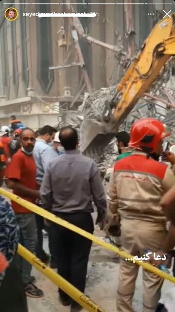 مجتبی خالدی، سخنگوی اورژانس کشور نیز درباره حضور شهروندان و سلبریتی ها در محل آوار برداری ساختمان متروپل به ایسنا گفت: حضور هیچ کسی به جز نیروهای امدادگر، آتشنشانان، اورژانس، هلال احمر و افرادی که مسئولیتی در راستای آواربرداری دارند در محل توصیه نمیشود.