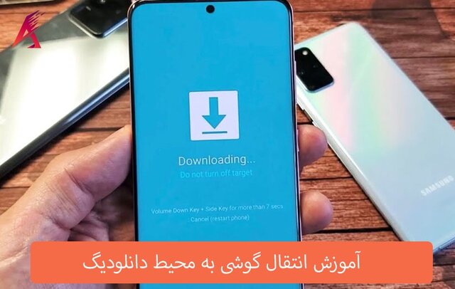 دکمه ولوم پایین + دکمه خانه (home) + دکمه پاور (power) هم زمان هر سه دکمه رو با هم نگه دارید تا وارد محیط دانلودینگ بشود.