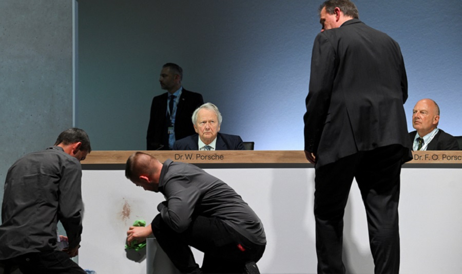 در واقع، ولفگانگ پورشه 80 ساله، رئیس پورشه SE، هدف مورد نظر بوده است. ویدیوی بالای این مقاله لحظه برخورد را نشان نمی ‌دهد، اما تکه‌های بزرگی در حین سخنرانی به سمت او پرتاب می‌شوند. کس در این حادثه آسیب ندید و همانطور که می توانید تصور کنید، نیروهای امنیتی به سرعت معترضان را از ساختمان خارج کردند.