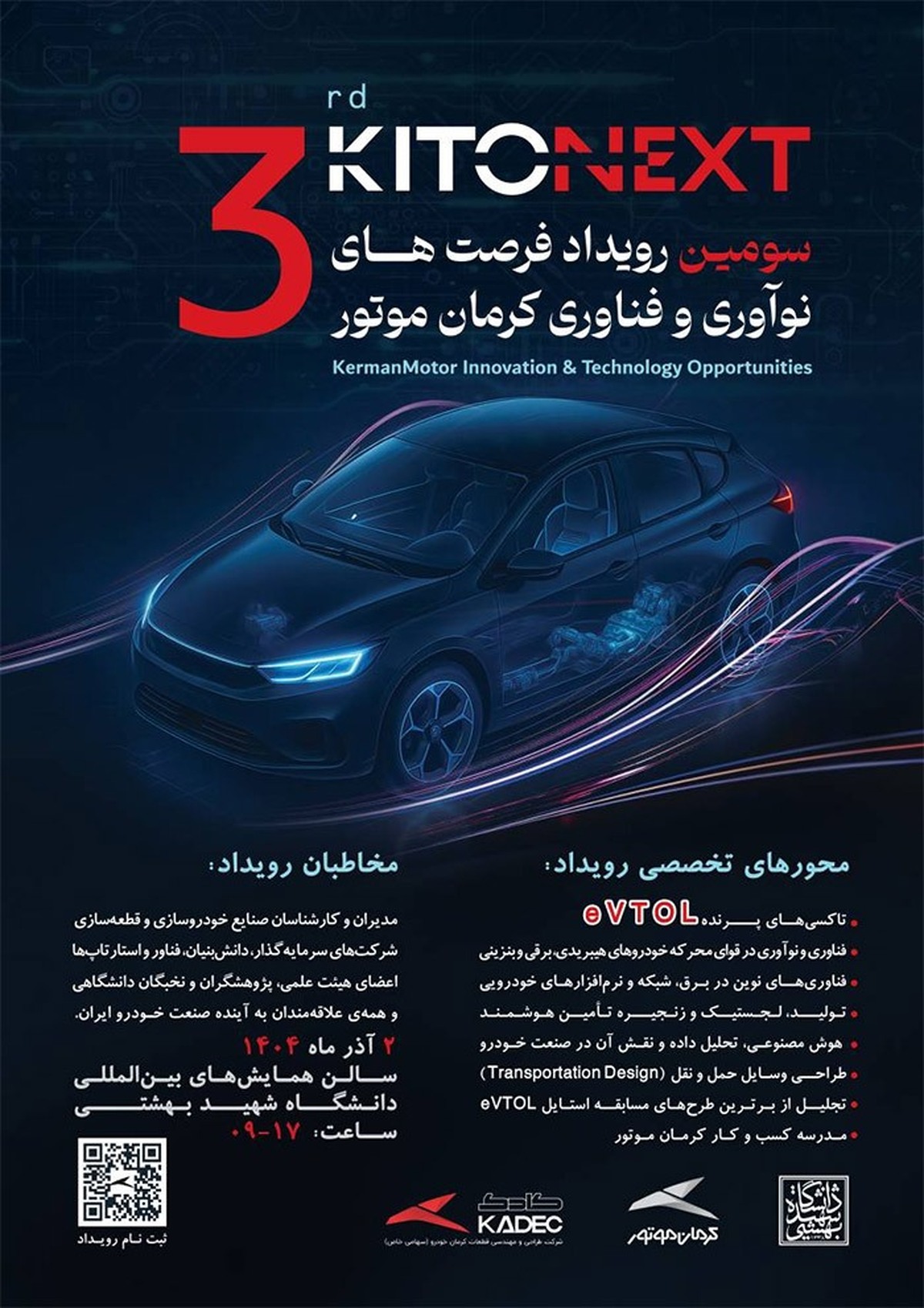 KITONEXT بهعنوان یکی از مهمترین رویدادهای نوآوری در صنعت خودرو ایران، با هدف ایجاد تعامل واقعی میان صنعت و دانشگاه، شناسایی ایدههای نوآورانه و حمایت از فناوریهای آیندهمحور برگزار میشود. در این دوره، مجموعهای از کارگاههای تخصصی، نشستهای علمی، ارائه پروژههای فناورانه کرمان موتور و بخشهای تعاملی برای شبکهسازی در نظر گرفته شده است.